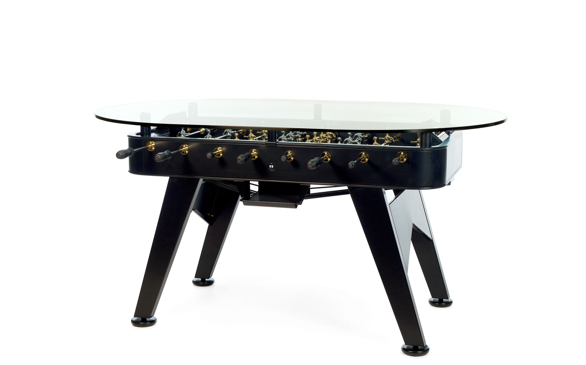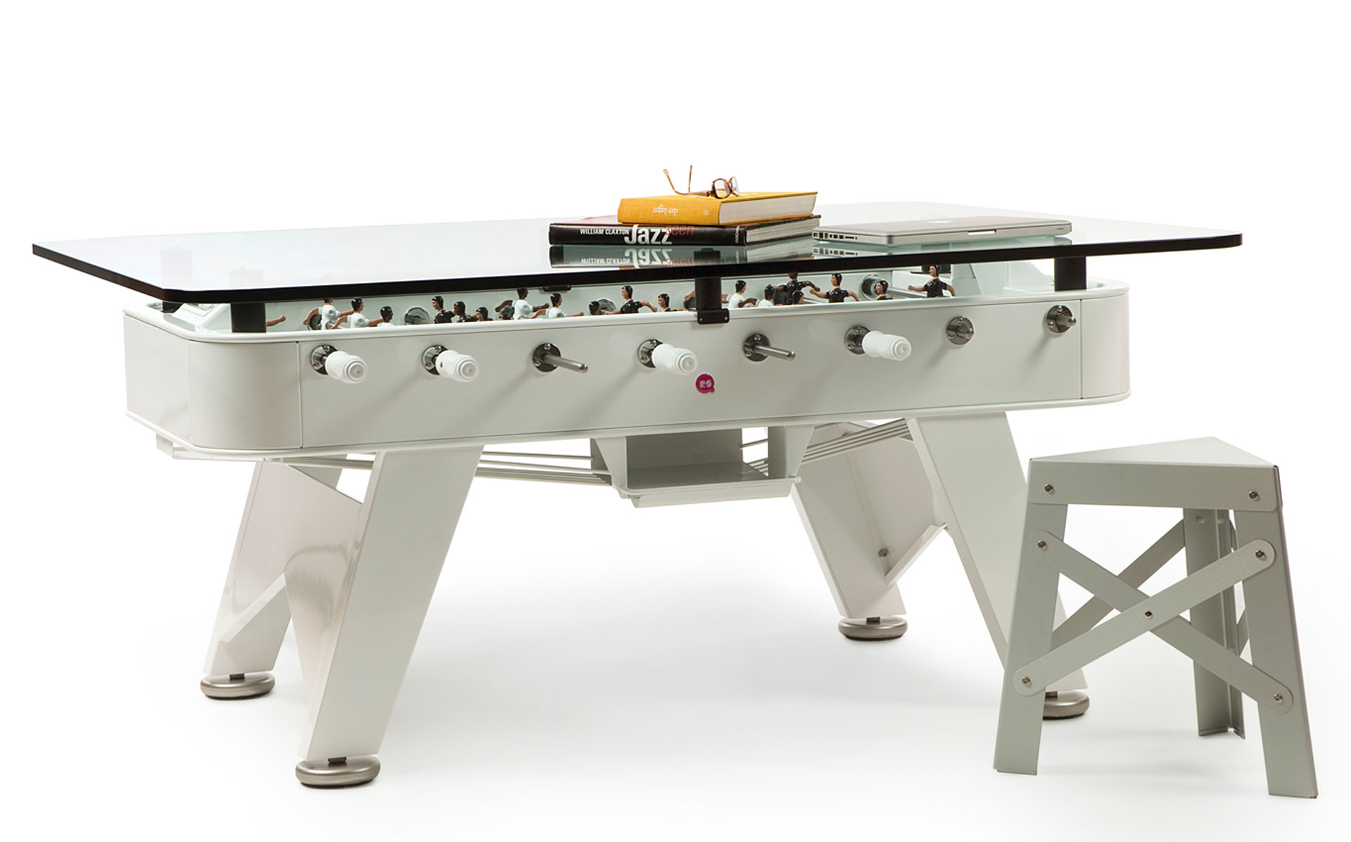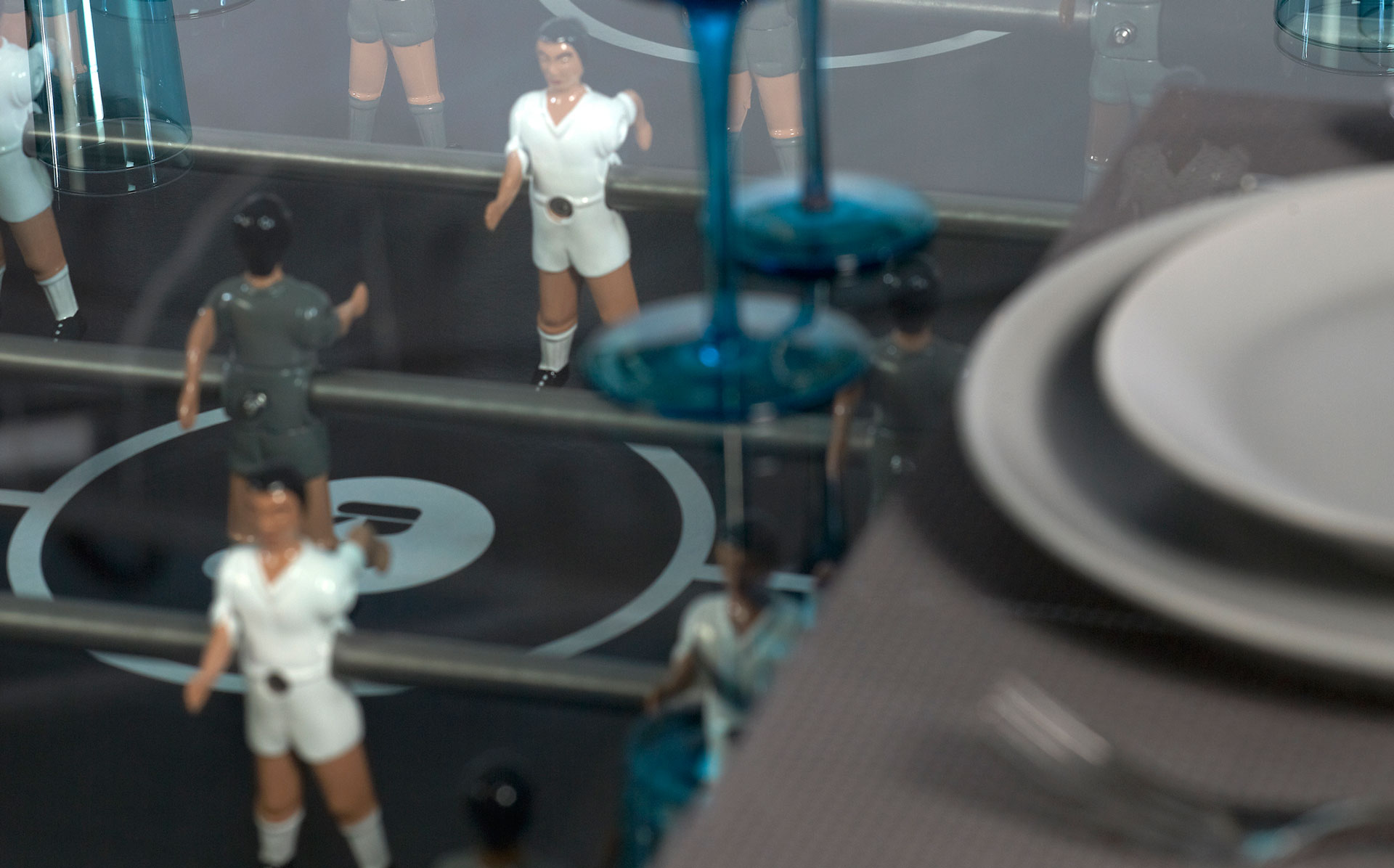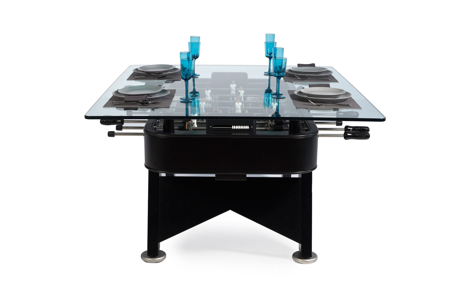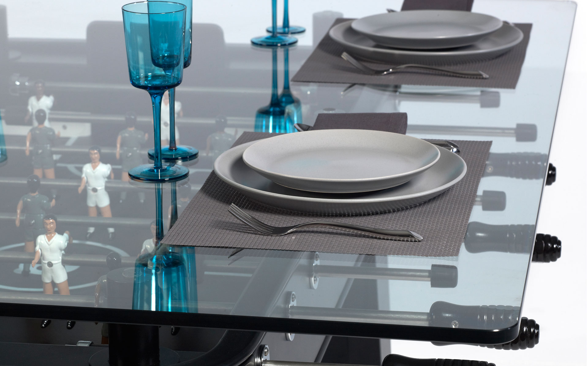 Ihr RS#2 Kickertisch kann mit einer Glasschicht montiert werden, damit Sie nach dem Essen oder auch während des Essens weiterspielen können.
